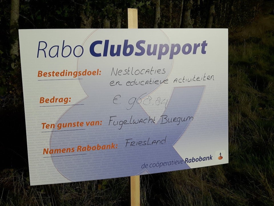 Lees meerFûgelwacht Burgum e.o. heeft mee gedaan aan de RaboClubSupport actie. De opbrengst van deze actie was een geweldig bedrag van 968,84 euro.